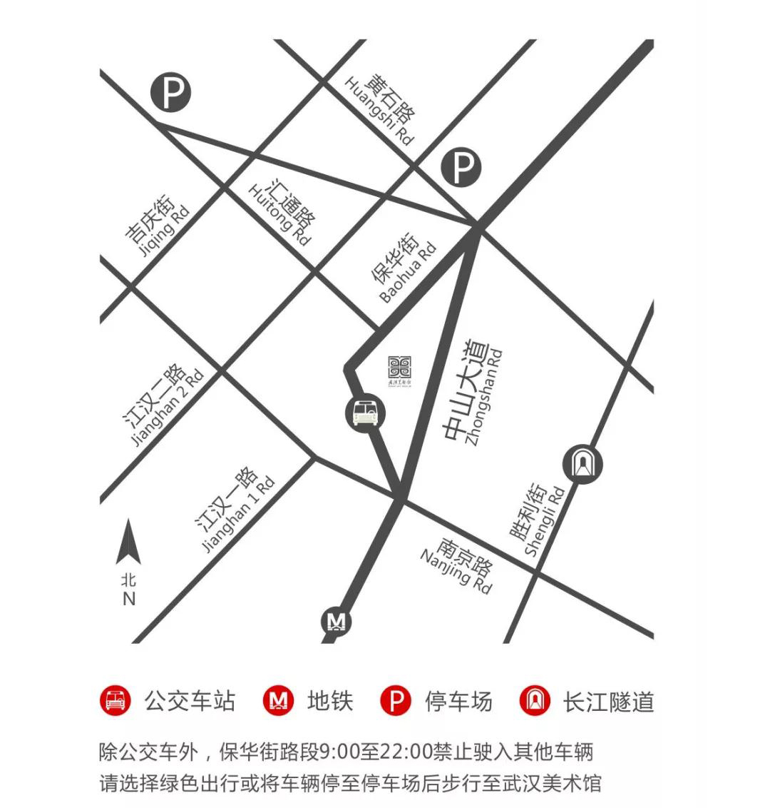 公交乘1、 24、 408、 581、 711、 727、 YX24、 電2路到保華街南京路或保華街黃石路車站下車,步行進(jìn)入美術(shù)館區(qū)域。