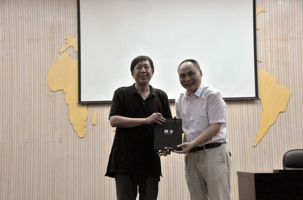 6月7日上午,武漢美術(shù)館館長樊楓受邀在華中師范大學(xué)美術(shù)學(xué)院開展了一場“藝術(shù)的經(jīng)典和時(shí)代”為主題的講座。講座開始前,在報(bào)告廳內(nèi)首先舉行了受聘儀式,武漢美術(shù)館館長樊楓受聘為華中師范大學(xué)美術(shù)學(xué)院客座教授,肖豐院長特為其頒發(fā)了受聘證書。