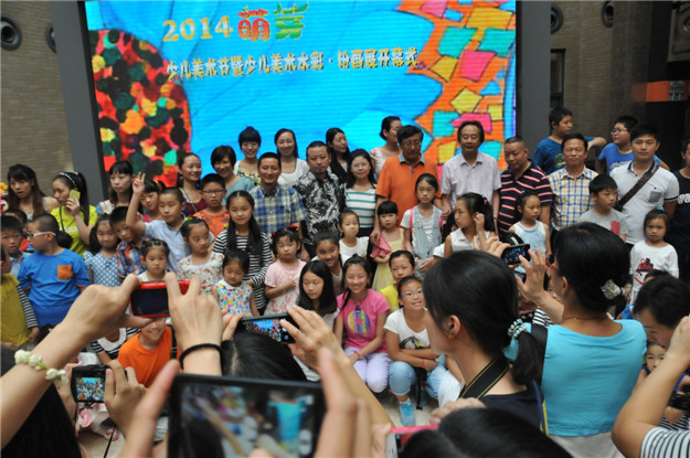 由武漢美術館、騰訊•大楚網(wǎng)主辦,湖北省校外美術工作室聯(lián)盟協(xié)辦的“萌芽•少兒美術節(jié)暨少兒美術水粉彩展”于8月14日上午在我館中庭開幕。恰逢武漢美術館即將舉辦“第十二屆全國美術作品展覽水彩•粉畫展”,為配合此次水彩大展,本次少兒美術節(jié)以“水彩”、“水粉”畫為主。