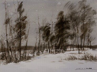 ??????? 讀周利群的繪畫作品,讓我想起那首古詩《賦得古原草送別》,這首詩的意境與周利群的繪畫作品有著完美的內(nèi)在契合。這是一首家喻戶曉、三歲小孩亦能唱頌的古詩 :