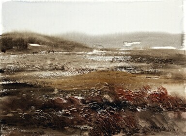??? 該詩通過對古原上野草的描繪,抒發(fā)惜別之情。“離離”描寫了春草的茂盛?!翱輼s”,指原上野草秋枯春榮,歲歲循環(huán),生生不已,表現(xiàn)了頑強的生命力,也刻畫出春草蔓延,綠野廣闊的景象,“古道”“荒城”又點出惜別的本意,水乳交融,意境渾成。而藝術(shù)家周利群的作品正是喜歡表現(xiàn)這類綿綿不盡的萋萋野草彌漫原野的情景,畫景抒情。只是他的畫不是對友情的惜別,而是感嘆現(xiàn)代文明對歷史與古老文明的沖蝕,其內(nèi)心的依依惜別與喟嘆之意充塞胸臆。