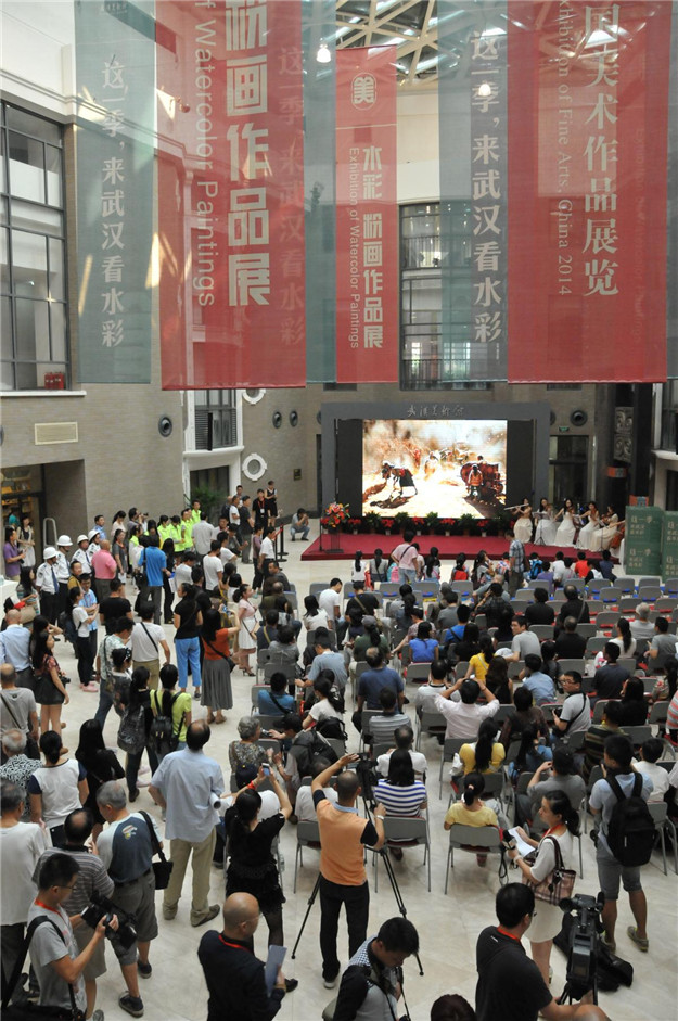 由湖北省美協(xié)、武漢美術(shù)館承辦第十二屆全國(guó)水彩?粉畫(huà)作品展于9月27日上午10點(diǎn)在我館開(kāi)幕,中國(guó)文聯(lián)副主席、中國(guó)美協(xié)主席劉大為,中國(guó)美術(shù)家協(xié)會(huì)分黨組成員、副秘書(shū)長(zhǎng)陶勤,中國(guó)美術(shù)家協(xié)會(huì)分黨組成員、副秘書(shū)長(zhǎng)杜軍,中國(guó)文聯(lián)辦公廳巡視員兼副主任金寧寧,中共湖北省委宣傳部副部長(zhǎng)陳連生,湖北省文聯(lián)副主席羅丹青等嘉賓出席了本次展覽的開(kāi)幕式。本次展覽開(kāi)幕式在一切從簡(jiǎn)的基礎(chǔ)上,還將美術(shù)館自身的教育功能落到實(shí)處,“這一季,來(lái)武漢看水彩·美藝坊”第一講也作為本次開(kāi)幕活動(dòng)的組成部分,中國(guó)美協(xié)主席劉大為先生與現(xiàn)場(chǎng)的小朋友及指導(dǎo)老師進(jìn)行了交流,對(duì)我館的公共教育表示贊賞。