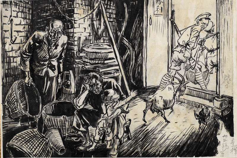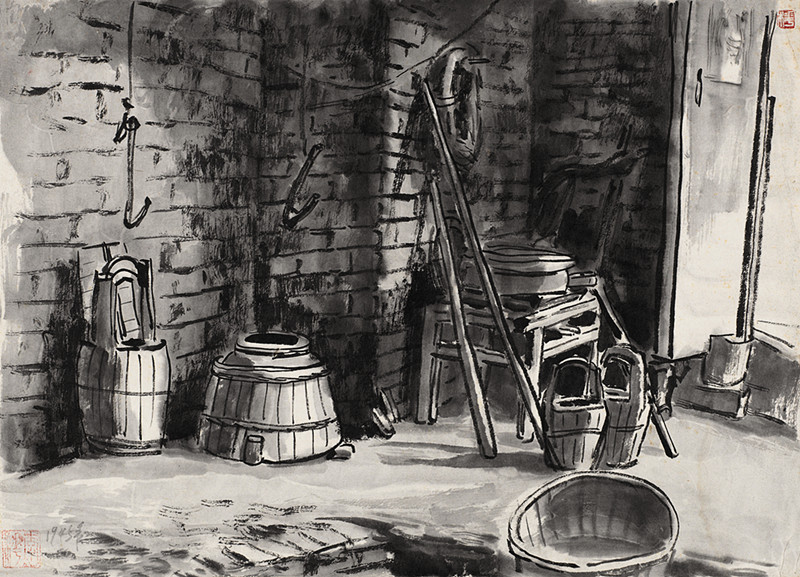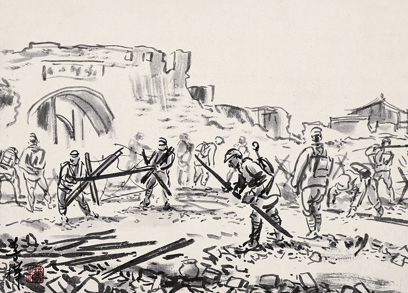 1937年抗日戰(zhàn)爭爆發(fā)后,李樺帶筆從戎,拿起手中的木刻刀參加抗戰(zhàn)軍隊,在第三戰(zhàn)區(qū)任文職軍官。1938年,一身戎裝的李樺同力群、賴少其、王琦等人在武漢共同籌備成立了“中華全國木刻界抗敵協(xié)會”,并擔任理事。八年軍旅生涯,李樺一直未間斷木刻版畫的創(chuàng)作,用手中的刻刀和畫筆投身到抗日救亡的浪潮中。這一時期,李樺的創(chuàng)作取材視野比以前擴大了,其創(chuàng)作的木刻、素描、水墨作品不僅有抗戰(zhàn)題材,還有大量的社會生活題材,如水墨畫《常德門外?清掃戰(zhàn)場》、《清明時節(jié)》、《幽居》等作品都富有濃郁的社會人文關懷,他用實地寫生的方式,讓人們看到在戰(zhàn)時底層農民艱苦生活的狀態(tài)。雖然這些作品歷經戰(zhàn)火,大部分已經遺失,現(xiàn)在只剩下二十余件,但正是這些精彩的水墨畫打破了以往人們對李樺藝術創(chuàng)作相對單一的認識,它們更加豐富而又立體地呈現(xiàn)出李樺這一階段的藝術創(chuàng)作。