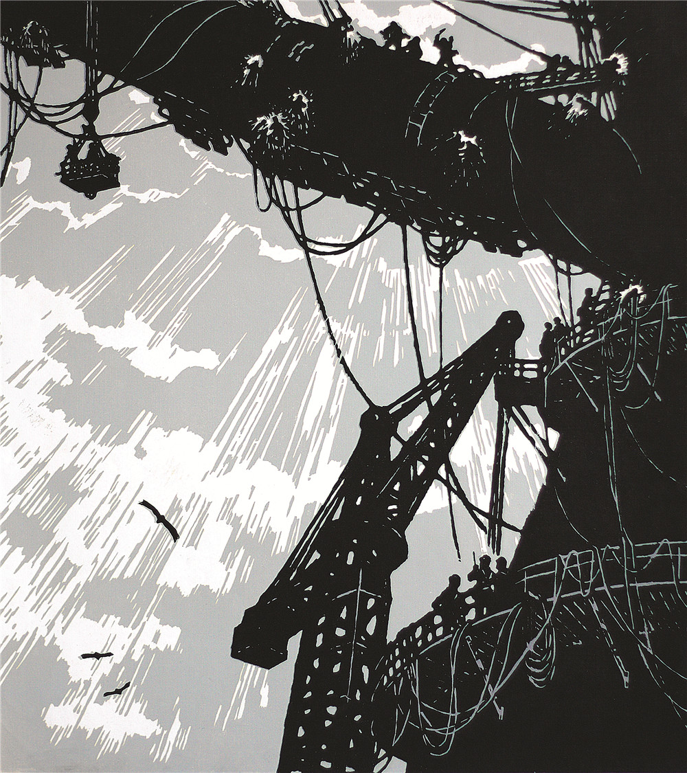 作為中國(guó)工業(yè)版畫的開拓者,早在上世紀(jì)50 年代宋恩厚就開始了自發(fā)的藝術(shù)創(chuàng)作。從產(chǎn)業(yè)工人中走出的工業(yè)版畫家見(jiàn)證了中國(guó)工業(yè)進(jìn)程的發(fā)展,完成了對(duì)版畫藝術(shù)語(yǔ)言的更新與擴(kuò)展。在藝術(shù)家自我藝術(shù)奮斗的同時(shí),他還積極地為中國(guó)工業(yè)版畫創(chuàng)作環(huán)境、創(chuàng)作規(guī)模、創(chuàng)作生態(tài)的形成與發(fā)展,工業(yè)版畫語(yǔ)言手法的探索、學(xué)術(shù)研究及人才推介不懈努力,被《工人日?qǐng)?bào)》譽(yù)為“扛鼎中國(guó)工業(yè)版畫”,是工業(yè)版畫的主推者和領(lǐng)頭人。