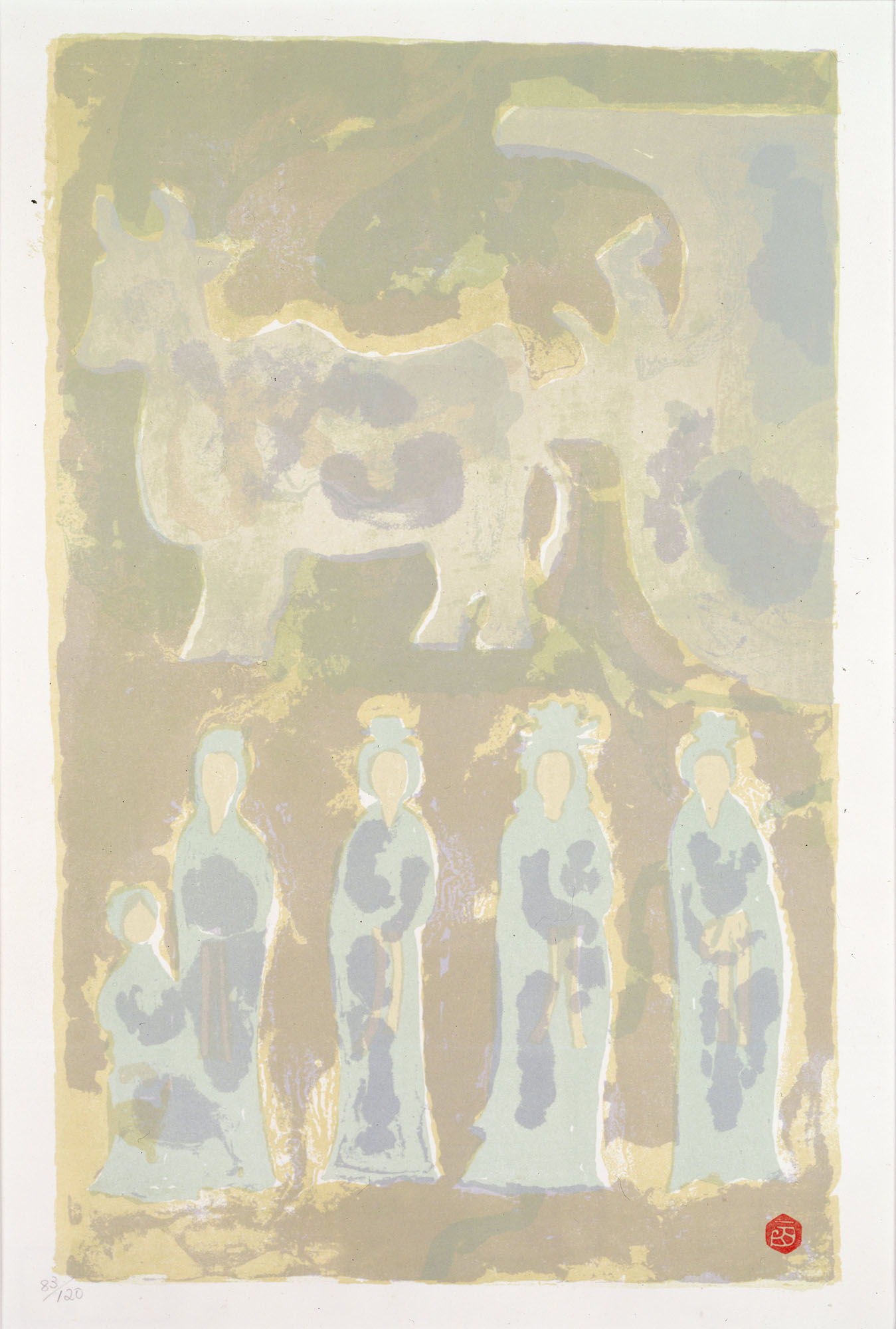 此次大分市美術(shù)館到武漢美術(shù)館展出的106幅優(yōu)秀館藏版畫作品,主要由唐詩選系列、圣家族、源氏物語、日月星辰、玄乃玄等七個系列組成,題材橫跨中西方,反映了高山辰雄對中西方傳統(tǒng)文化不同側(cè)重點的喜愛。本次展覽的主題是“無邪之思”,“無邪”是指中和雅正,是詩的最高標準,這也正反映了高山辰雄那種帶著現(xiàn)實的鎖鏈但又不斷追求如孩童般天真自由地遨游于太空的態(tài)度,其作品滲透出來的文化情懷,是一種無法用話語表達的視覺之詩。