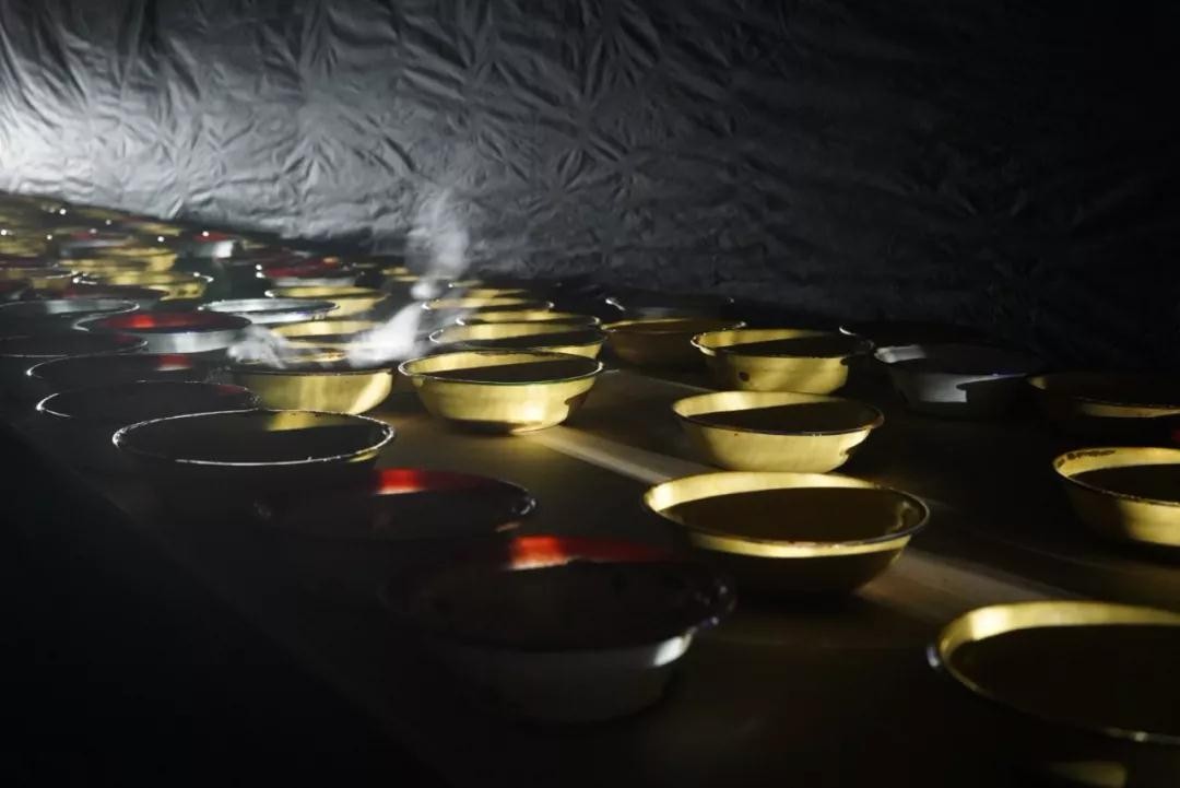 同時在展廳頂部安置水箱,水箱里的水是我從長江里取過來的。滴落的江水,在與飯盆接觸的瞬間蒸發(fā)成氣體,現(xiàn)場彌漫著長江的味道。