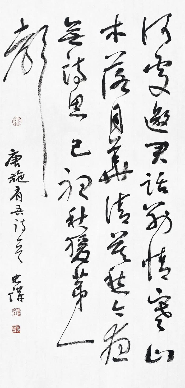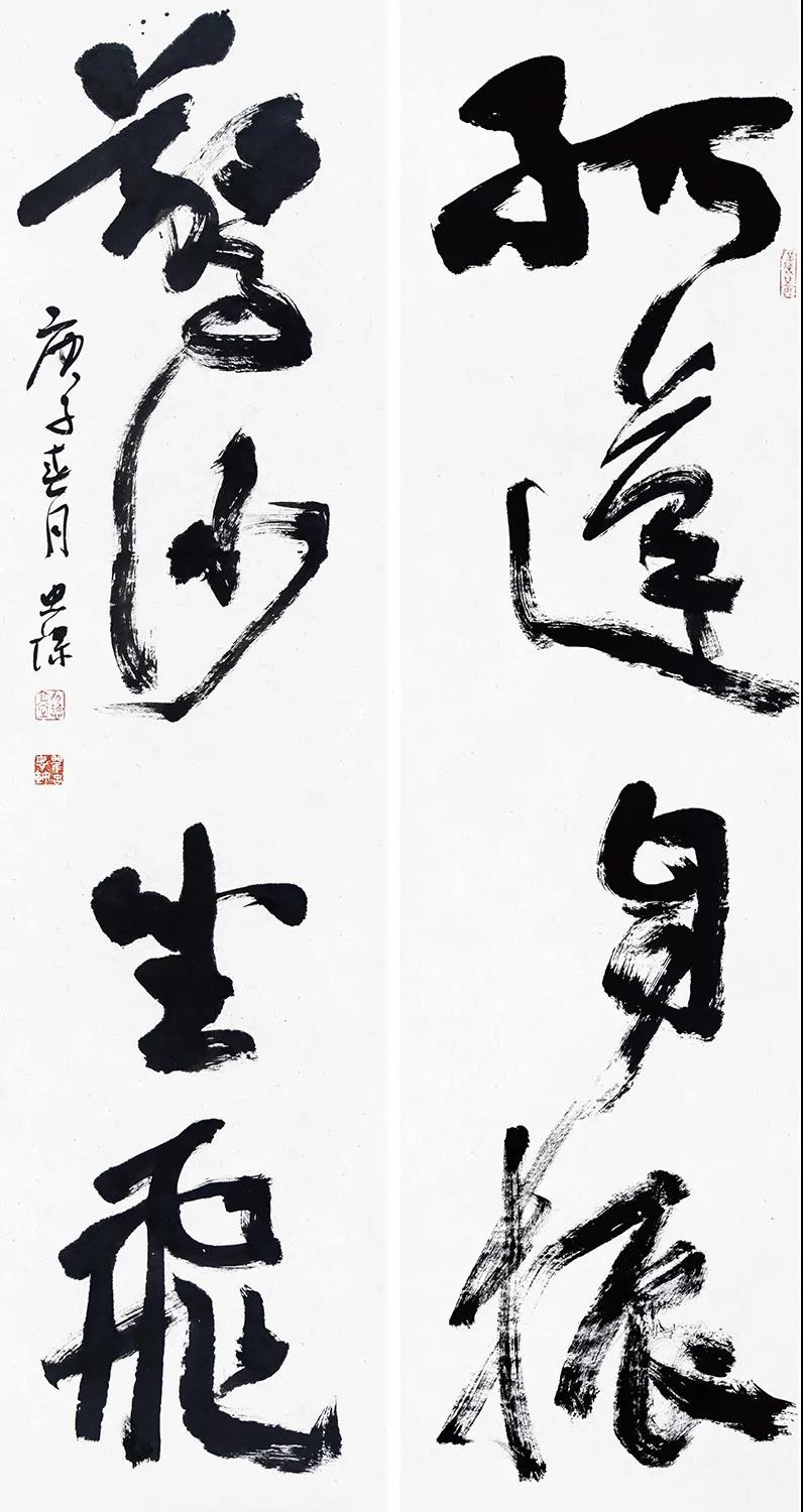 若再以動(dòng)靜之變觀之,其動(dòng)在于筆墨于揮之勢(shì)中,不僅著意手力的連貫,亦在于心力的馳驅(qū),筆落墨噴,參化自然之道,有時(shí)聽之任之,警惕信筆而為以達(dá)全局之成。