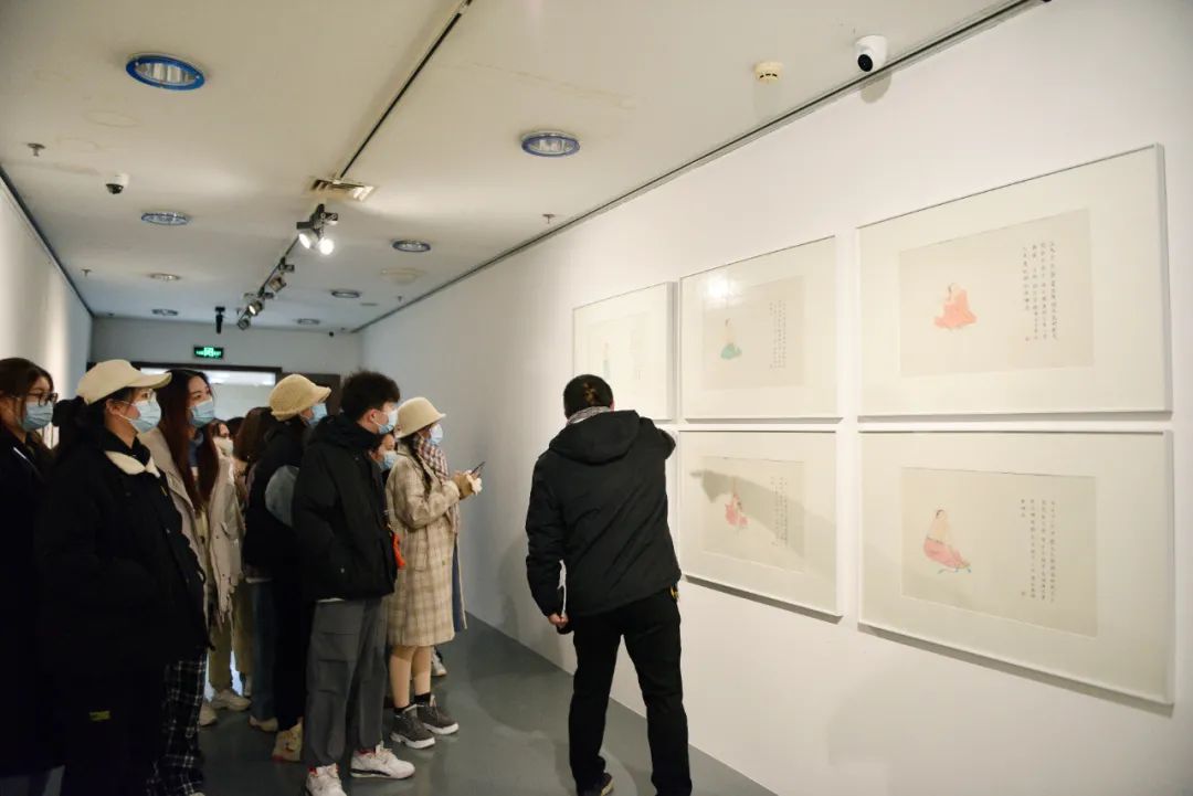 △ 展廳現(xiàn)場(chǎng),同學(xué)們認(rèn)真觀摩藝術(shù)作品