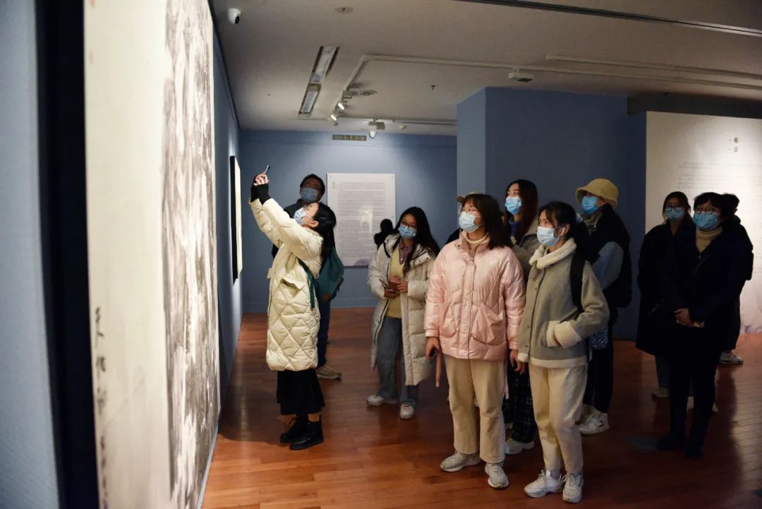 “展覽應(yīng)該看什么、該怎么看?”、“藝術(shù)家的風(fēng)格欣賞與研究不僅在于眼前的作品......”在導(dǎo)覽過(guò)程中,張文博先生鼓勵(lì)同學(xué)們從多方面研究展覽要素,從展覽標(biāo)題、展品介紹、展覽畫(huà)冊(cè)和實(shí)際的觀展體驗(yàn)入手,由點(diǎn)到面,融會(huì)貫通地感受藝術(shù)家的創(chuàng)作表現(xiàn),發(fā)現(xiàn)藝術(shù)家內(nèi)心世界的新舊程式語(yǔ)言與個(gè)人藝術(shù)風(fēng)格的連接,拓展了同學(xué)們的看展思路。