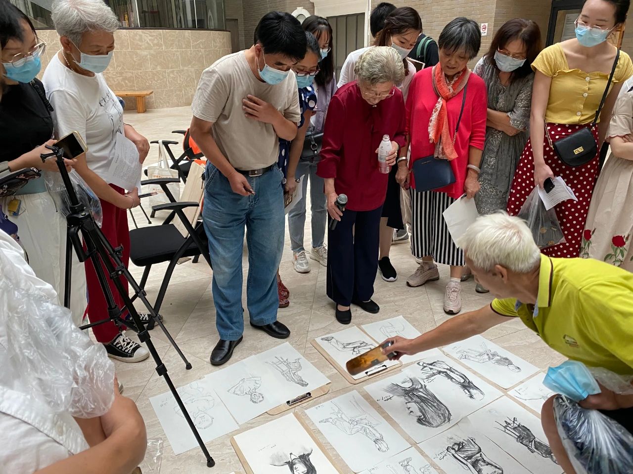 ? ? ? ? 為了幫助觀眾理解速寫的基礎(chǔ)理論,90歲高齡的謝珍珠老師堅(jiān)持提前一周備課并為現(xiàn)場的觀眾朋友們整理講義,謝老師孜孜不倦的教學(xué)態(tài)度以及對教育事業(yè)的熱愛深深感染了現(xiàn)場每一位觀眾及工作人員,敬意油然而生。課后,謝珍珠老師為觀眾點(diǎn)評、講解作品,他們也紛紛向謝老師表示感謝和敬意。