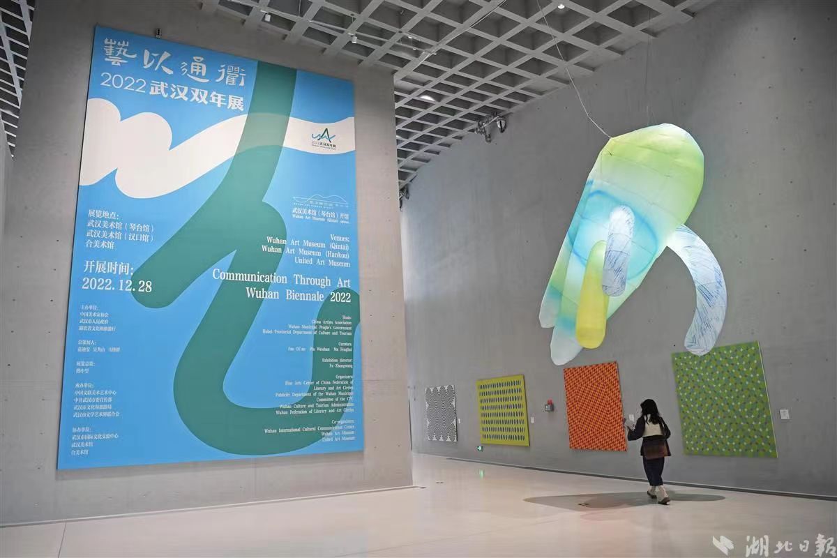 2022年12月28日上午,“藝以通衢——2022武漢雙年展”在武漢美術(shù)館(琴臺館)啟幕。來自中外285位藝術(shù)家及團(tuán)隊的446件(組)優(yōu)秀藝術(shù)作品,以繪畫、雕塑、影像裝置藝術(shù)、新媒體藝術(shù)、科技藝術(shù)以及藝術(shù)設(shè)計等多種藝術(shù)形式,在位于漢陽月湖之畔的武漢美術(shù)館(琴臺館)、漢口百年歷史風(fēng)貌區(qū)的武漢美術(shù)館(漢口館)、武昌野芷湖邊的合美術(shù)館三館同期展出。該展將持續(xù)到2023年5月31日。
