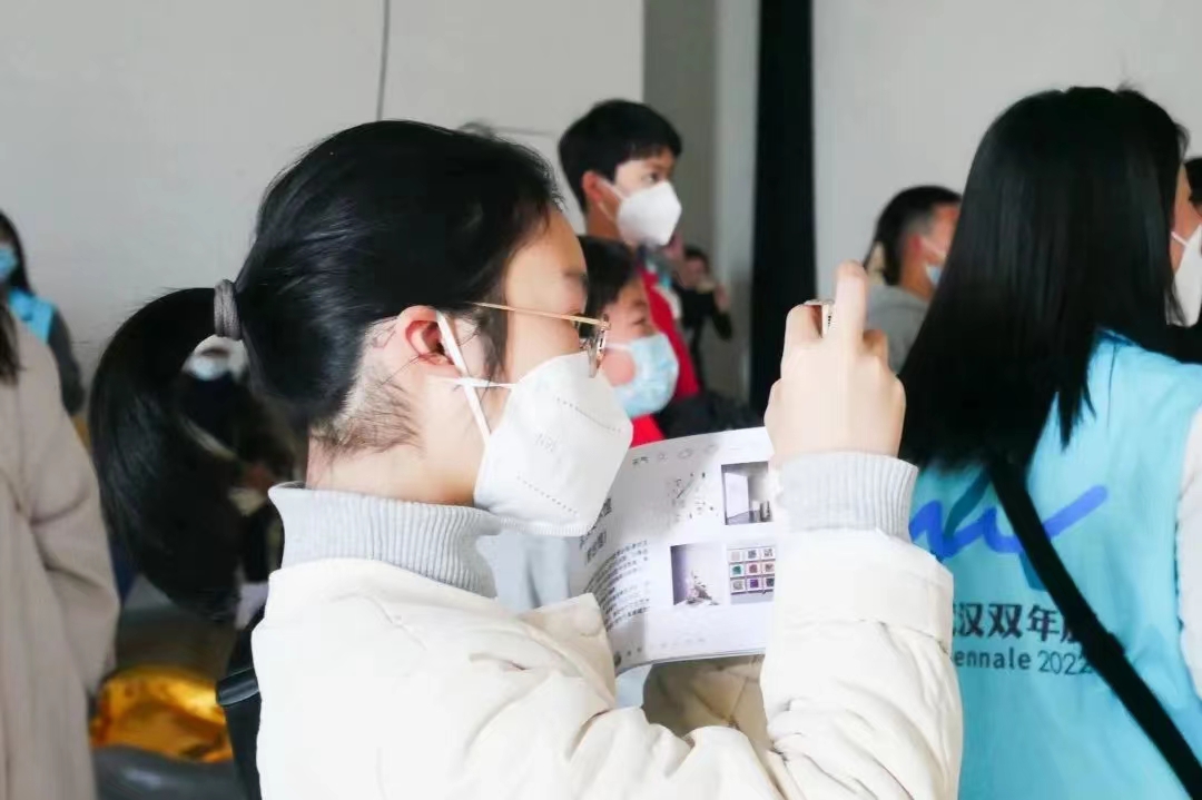 活動(dòng)當(dāng)天,2022武漢雙年展高校志愿者為師生團(tuán)體介紹了武漢美術(shù)館(琴臺(tái)館)的建筑設(shè)計(jì),為師生導(dǎo)覽2022首屆武漢雙年展在琴臺(tái)館展出的三大展覽專(zhuān)題。