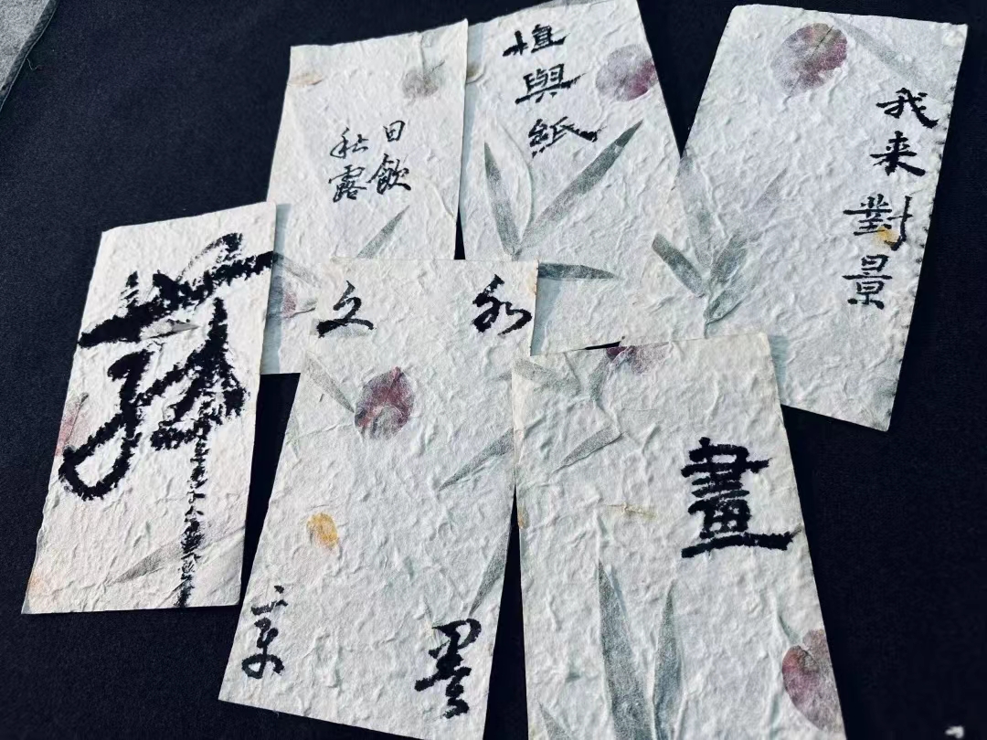 △活動(dòng)中,觀眾動(dòng)手體驗(yàn)花草造紙的樂趣