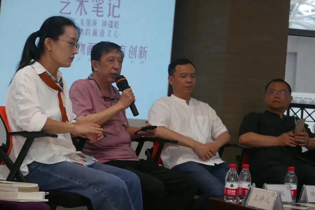 當(dāng)天上午十點(diǎn),在武漢美術(shù)館四、七號(hào)展廳之間,舉辦了一場以“當(dāng)代水墨人物畫的語言創(chuàng)新”為主題的學(xué)術(shù)研討會(huì),由本次展覽策展人荊菲女士擔(dān)任主持人。