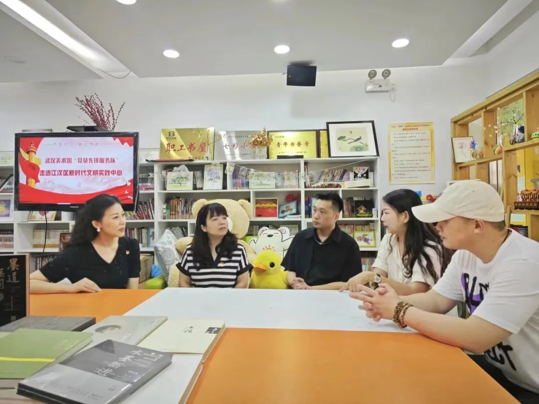 課程結(jié)束后,武漢美術(shù)館“黨員先鋒服務(wù)隊(duì)”一行與武漢市江漢區(qū)友誼青少年空間社會(huì)工作服務(wù)中心主任陳宇就未來(lái)美育共建合作方向開(kāi)展交流座談。