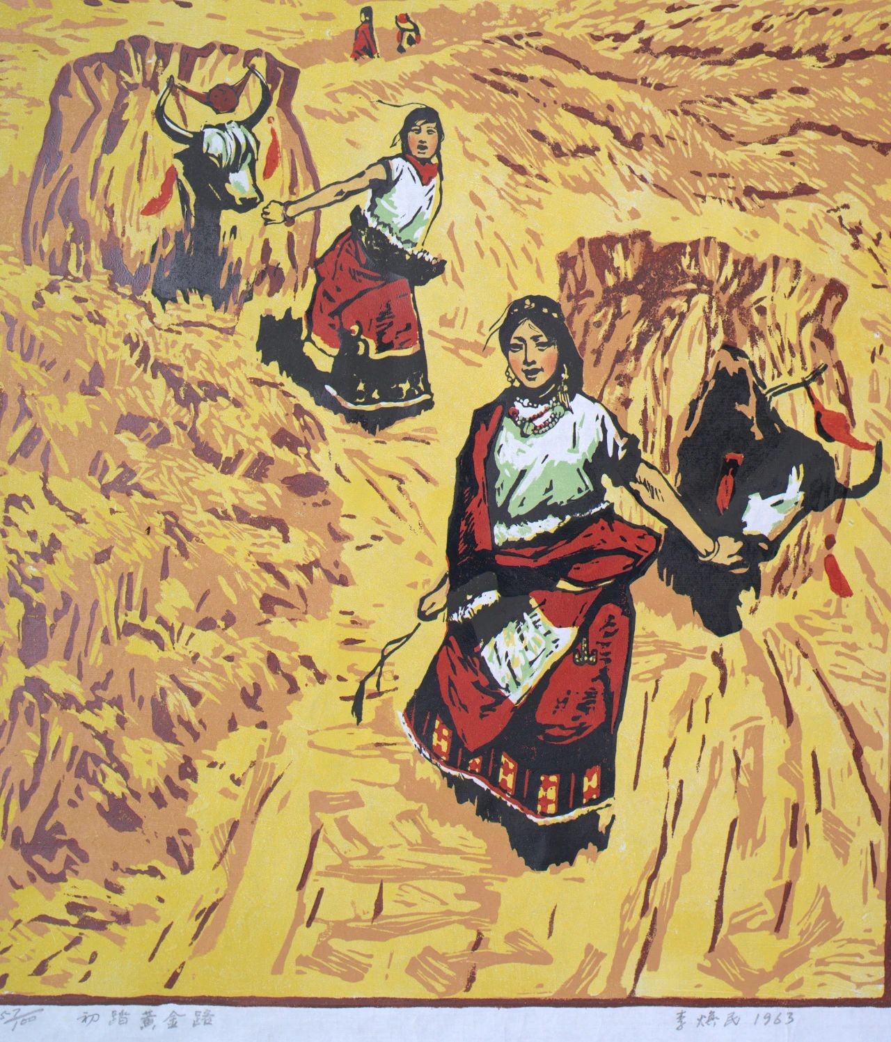 中華人民共和國成立以后,因版畫便捷易傳播的特性,與政治、經(jīng)濟建設(shè)緊密結(jié)合,進入到如火如荼的社會主義建設(shè)中。浙江版畫、央美版畫、四川版畫、江蘇水印、北大荒版畫等以地域為特色的版畫團體,涌現(xiàn)出一大批名家力作,我館在多年的收藏中均有涉獵。該板塊以藏品為基礎(chǔ),李煥民《初踏黃金路》、鄔繼德《悠悠歲月》、朱維明《漁村》、俞啟慧《秋夜憶舊》、甘正倫《姑蘇人家》 、張遠(yuǎn)帆《游記》系列、張敏杰《CHINA.雜技NO1》等名家作品,表現(xiàn)熱火朝天的建設(shè)場面和社會主義新生活,以及在新時代發(fā)展中版畫家關(guān)于國家、個人、未來的發(fā)展,關(guān)于周遭有感而發(fā)的多元呈現(xiàn),讓我們看到版畫緊隨時代發(fā)展而做出的努力。