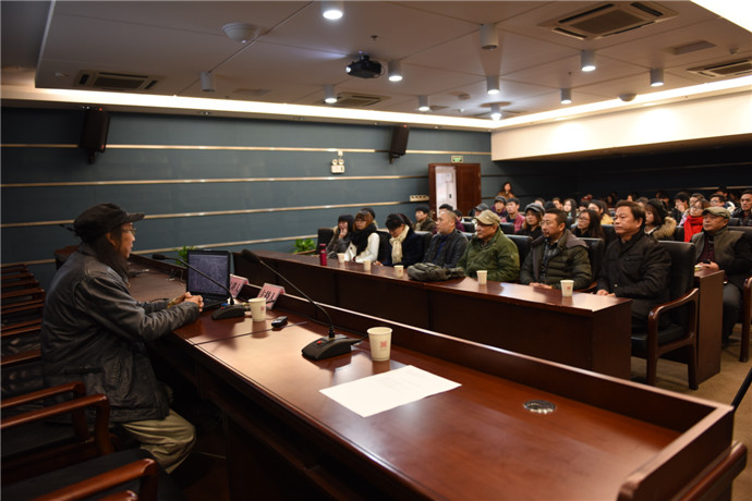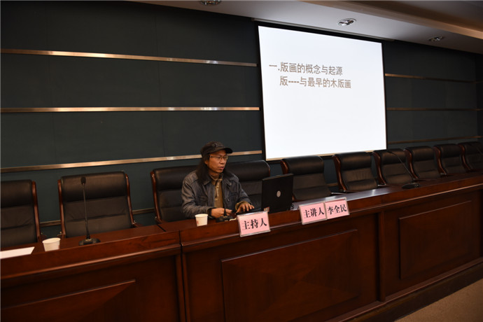 2014年12月26日是武漢美術(shù)館6周年的生日,也是“壹年——張廣慧作品展”開幕的日子,上午以主題為“從木版畫到綜合版畫”的學(xué)術(shù)講座如期舉辦,受到了廣大版畫學(xué)生、藝術(shù)愛好者的歡迎,主講人廣州美術(shù)學(xué)院版畫系主任李全民教授為我們帶來了專業(yè)而生動的版畫理論知識和作品解析,在2個小時的時間里,對版畫的發(fā)展脈絡(luò)進行了簡潔清晰的梳理,并通過優(yōu)秀的和具有轉(zhuǎn)折意義的版畫作品案例將理論具象化。其主題“從木版畫到綜合版畫”即指出了版畫的發(fā)展脈絡(luò),版畫從木版畫開始,最早的木版畫起源于中國,到現(xiàn)在走向綜合的狀態(tài),綜合版畫是版畫發(fā)展的新領(lǐng)域,對版畫起到重要的推動作用,其層次表現(xiàn)是其重要特點與技術(shù)之一。其間談及版畫的藝術(shù)教學(xué)時,李全民教授強調(diào)其教學(xué)思想“人人都可以是藝術(shù)家”、對藝術(shù)學(xué)生“教學(xué)要打破木桶理論”, 摒棄短板,挖掘長處,不要試圖去用短板否定任何一個學(xué)生成為藝術(shù)家的可能,引起了在座很多師生的共鳴。