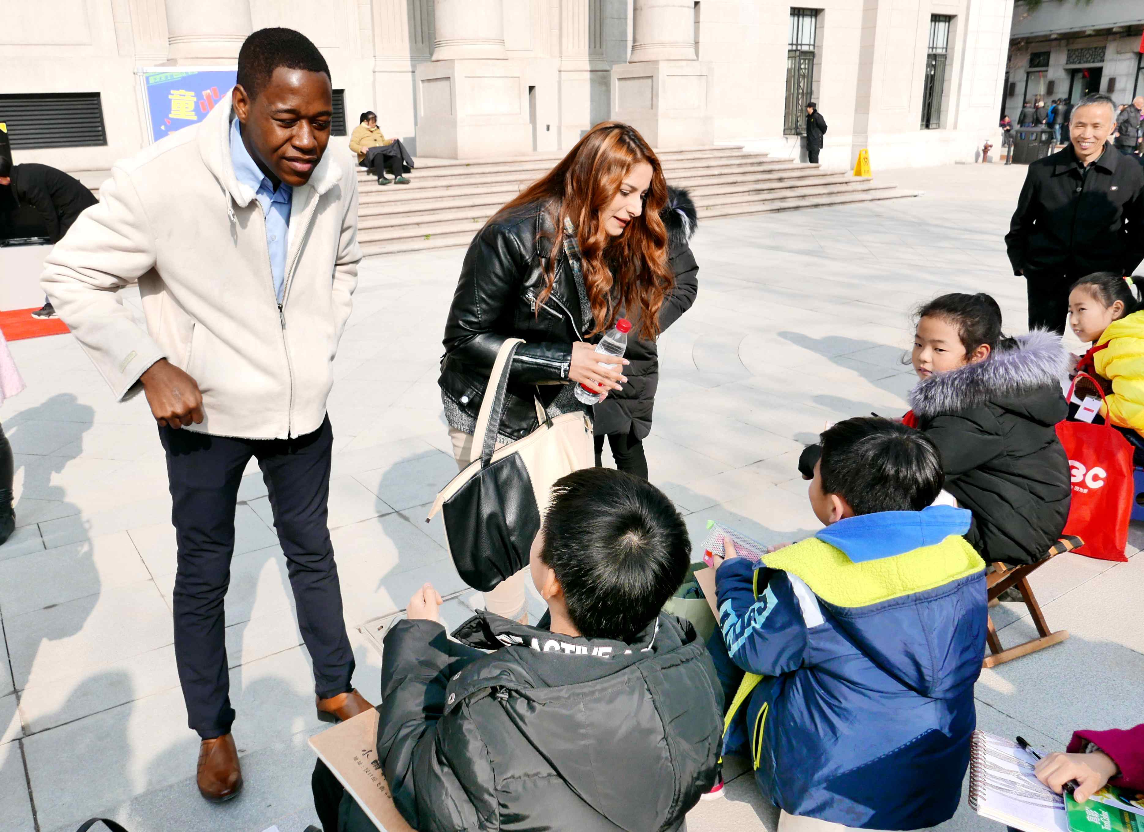 2016年12月28日下午, 武漢美術(shù)館南門口一派熱鬧景象。分別來(lái)自南非和巴基斯坦的李安老師和安娜老師,義務(wù)為50位小朋友們帶來(lái)了一堂國(guó)際公開課。