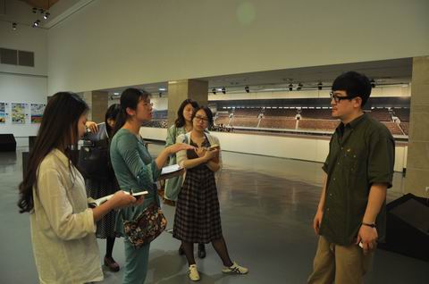 4月9日下午,長江商報(bào)、長江日?qǐng)?bào)、楚天都市報(bào)、大武漢等媒體記者團(tuán)來到我館參觀了正在預(yù)展的“2009年以來的中國攝影”,對(duì)正在指導(dǎo)布展工作的策展人之一蔡萌進(jìn)行了采訪,就展覽的基本情況、作品富含的深意、布展工作的情況進(jìn)行了深入了解。通過對(duì)展覽的提前了解,他們能夠準(zhǔn)確、精彩地將本次高規(guī)格、新思潮的攝影展資訊傳播于廣大市民。